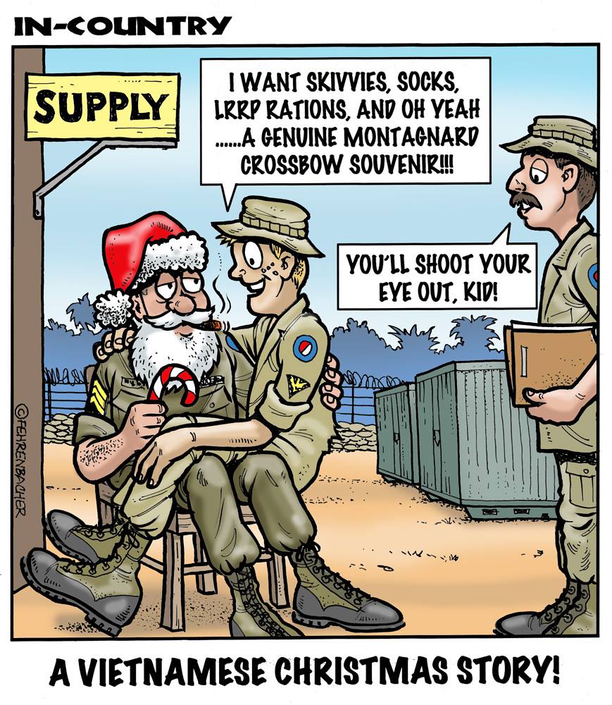 Phil enlisted in the Army in 1965 where you served for years in Vietnam. He became a graphic designer and has worked for the state of Oregon for 26 years. He retired in 2003 and started the Cartoon "In-Country". The cartoons reflect his experiences during his tour of duty in South Vietnam.